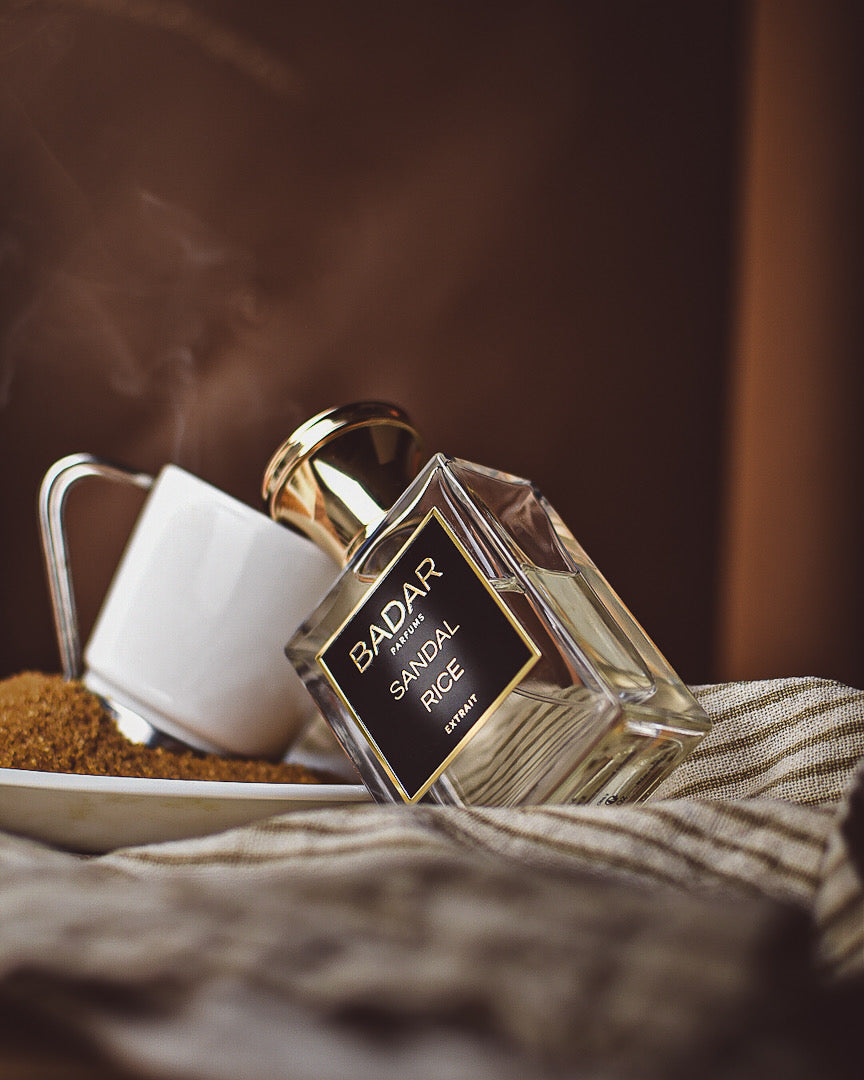 La douceur de la vanille, la gourmandise de la note de riz, une pointe de caramel et ce santal venu d'ailleurs, contrebalancé par une note de café bien corsé accompagnée par un bois de gaïac intense.